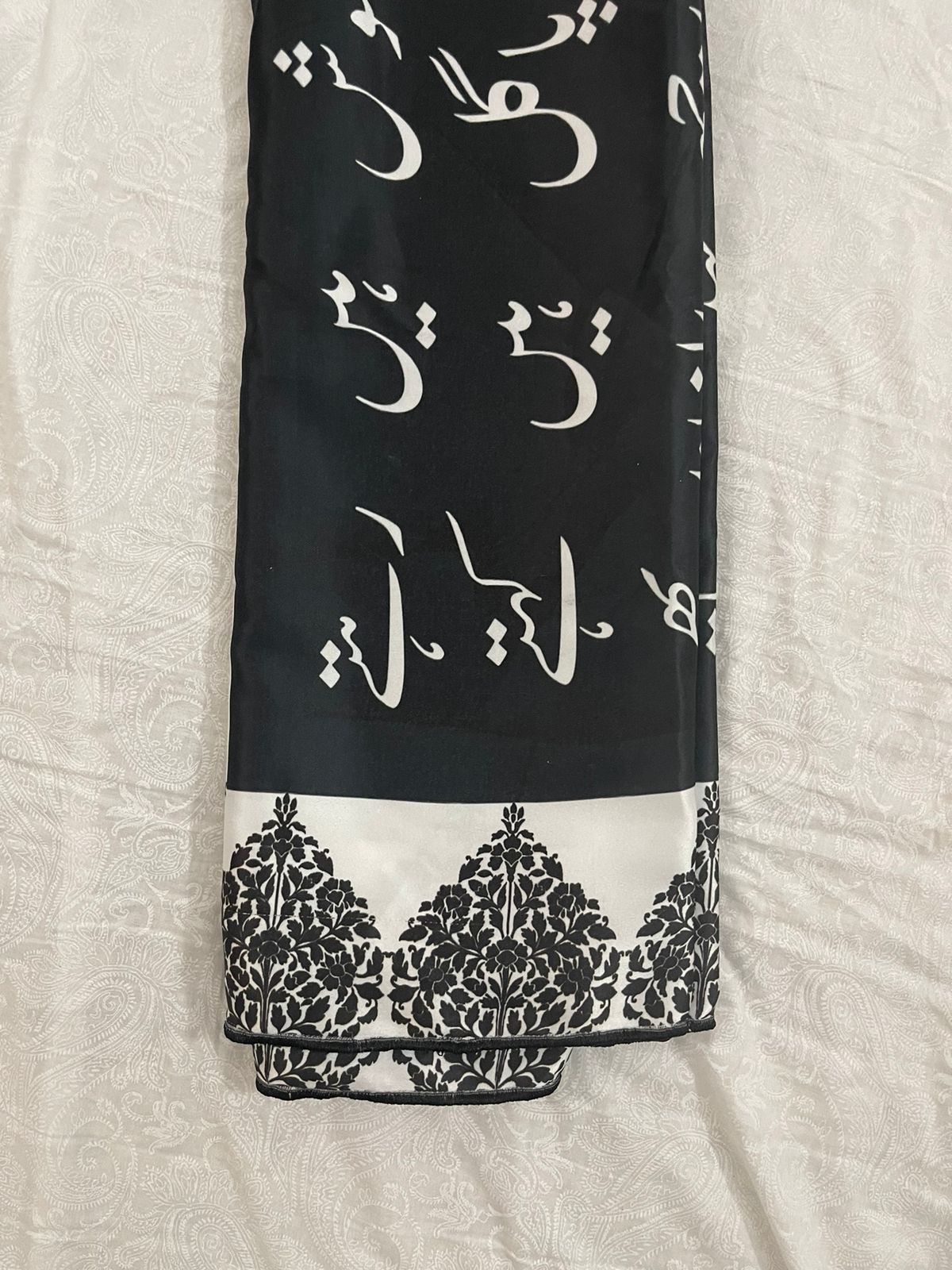Elevate your legal attire with our exclusive Lawyer’s Black and White Urdu Calligraphy Silk Dupatta – a unique blend of sophistication and cultural pride. Tailored specifically for legal professionals, this distinctive accessory combines the timeless elegance of black and white design with the artistic beauty of Urdu calligraphy.